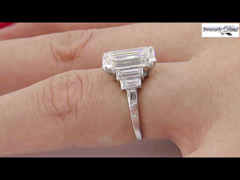 Art Deco GIA 4.37ct Emerald Cut Diamond Antique Vintage Platinum Ring - Art Deco Emerald Platinum Ring